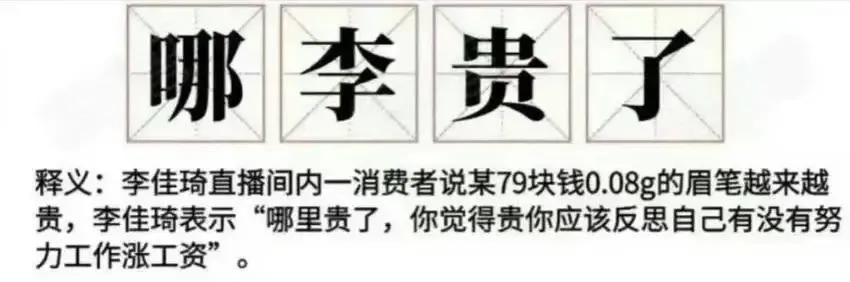 2023年9月10日,头部主播李佳琦在直播间带货“花西子”产品,推介一款79.9元的眉笔时,有网友评论“花西子眉笔越来越贵了”。李佳琦当即回应“哪里贵了,国货很难的”,并提醒消费者要从自己身上找原因,“这么多年工资涨没涨,有没有认真工作”。