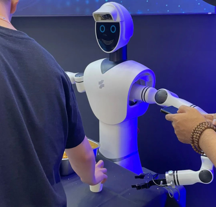 成立于2023年的灵生科技,他们的具身智能机器人正在为现场的小朋友们盛爆米花。