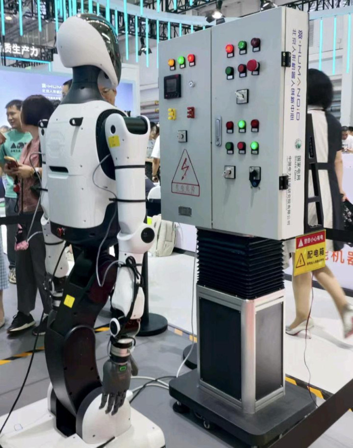 北京人形机器人创新中心带来通用机器人“天工”,今年4月在北京亦庄举办的全球首届人形机器人半马,冠军就是它。
