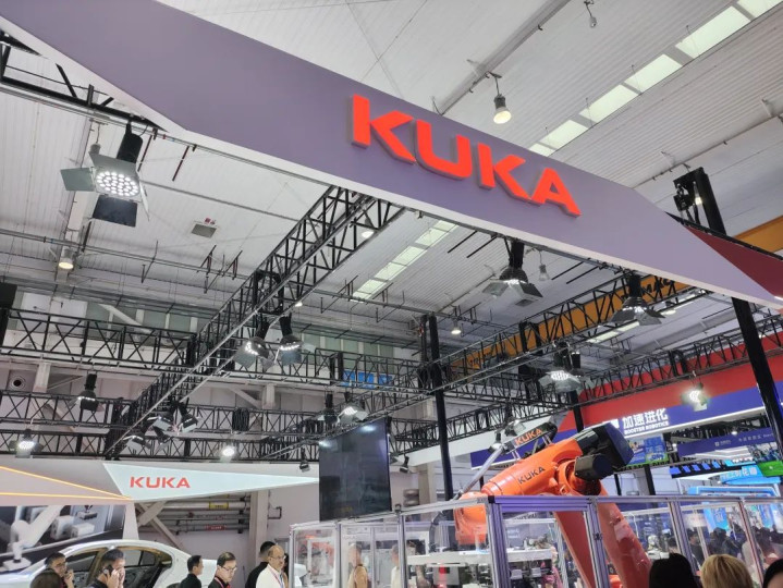 工业机器人上,KUKA也交出了自己的答卷,直接将整个重载搬运工作站搬了过来,配置有250kg抓手和650kg托盘,无论是机床上下料,还是铣削打螺丝,各种工艺手到擒来。