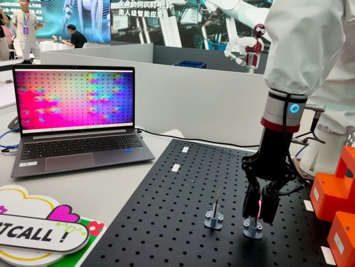 中国科学院自动化所就现场展示了机器人的高精度、高泛化柔性线缆插接等精细工作。