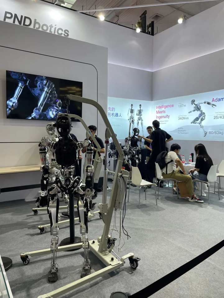 还有许多初创团队带来了他们的具身机器人作品,如PNDbotics展示了他们的通用人形机器人,致力于打造通用人形机器人底层技术平台。